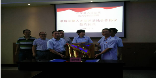 为了给学生提供将理论与实践相结合的平台,2017年7月5日宜宾学院法学院与江安县人民法院携手共同创建了卓越法律人才培养基地。当天下午,在江安县人民法院四楼中干会议室召开了签约仪式。