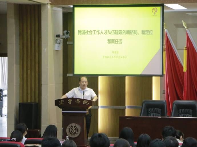 为加强党对社会工作人才的全面领导,明晰当下社工发展状态以及未来发展趋势,推动新格局下的社会工作人才队伍建设,6月5日,宜宾学院法学与公共管理学院(下简称:法管学院)于A区图书馆第三会议室开展了以“我国社会工作人才队伍建设的新格局、新定位和新任务”为主题的知识讲座。本次讲座特邀中国社会工作学会秘书长邹学银担任主讲人,宜宾市康复医院,叙州区委社会工作部基层治理服务中心主任张登雄,叙州区委社会工作部杨柳,屏山县委社会工作部部长杨勇、副部长曾姝菡、副部长陈相奕,江安县委社工部,金江社工、屏行社工、众禾社工,宜宾学院社会学研究所所长陈世海、社会工作教研室主任邓镛出席本次讲座。