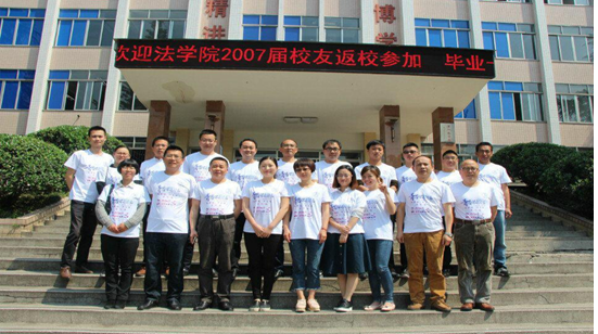 励志创业报告会结束后,校友们相聚到一教正门前合影留念,紧接着校友们来到法学院会议室与院方召开亲切座谈。座谈会上,校友们纷纷介绍了各自离校后的经历,生活上、工作上,虽然各人的人生经历大不相同,但所有人都同意大学的四年是自己人生最关键的四年,自己的成功在相当程度上得益于自己在大学受到的教育。所有的校友都感恩在大学关心与帮助自己的师长,校友们妙语连珠,会议室里不时爆发出阵阵笑声。