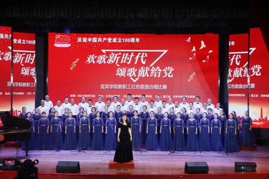为庆祝建党一百周年,展现学部教职工的良好精神风貌,法学与公共管理学部工会在学部党总支的领导下积极组织教职工参与宜宾学院党委于2021年6月16日下午在三平台演播厅主办的“欢歌新时代·颂歌献给党”教职工红色歌曲合唱比赛,荣获二等奖第一名。
