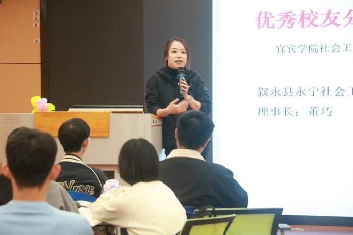 董巧现任叙永县永宁社会工作服务中心理事长。她首先谈到自己在大学里的学习生活,激励大家要有意识的培养自己的个性,提高自身的责任意识、组织策划和人际沟通能力;要勇于直面人生的重重挫折,学会从问题中汲取经验,从中沉淀自我、实现自我目标。同时,她引导大家思考未来从业状况,帮助同学们进一步明晰择业方向。最后,她希望同学们都能珍惜当下,享受生活,增加大学生活的体验感和幸福感。