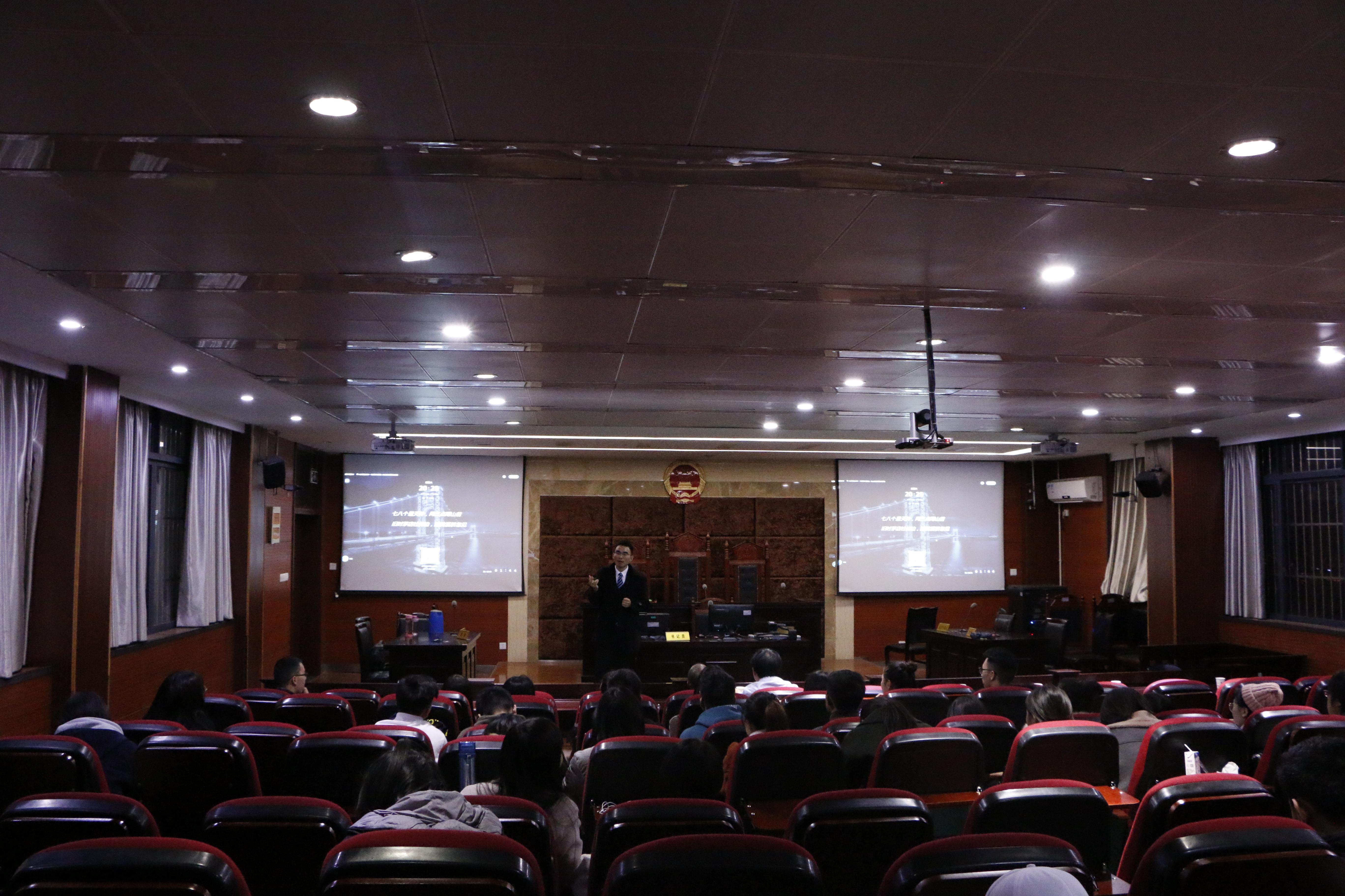 捐赠仪式结束后,肖永红又参加了法学院座谈会及优秀校友成长励志专题讲座,与法学院师生分享自己的成长经历。肖永红校友讲述了自己刚来到宜宾学院时对家乡的思念并且将这份情转为学习的动力,寄语广大同学们,希望同学们珍惜时光、刻苦学习,学会感恩、学会传承,把宜院精神和校友情怀传播开来,让宜院人的爱心事业延续传承。