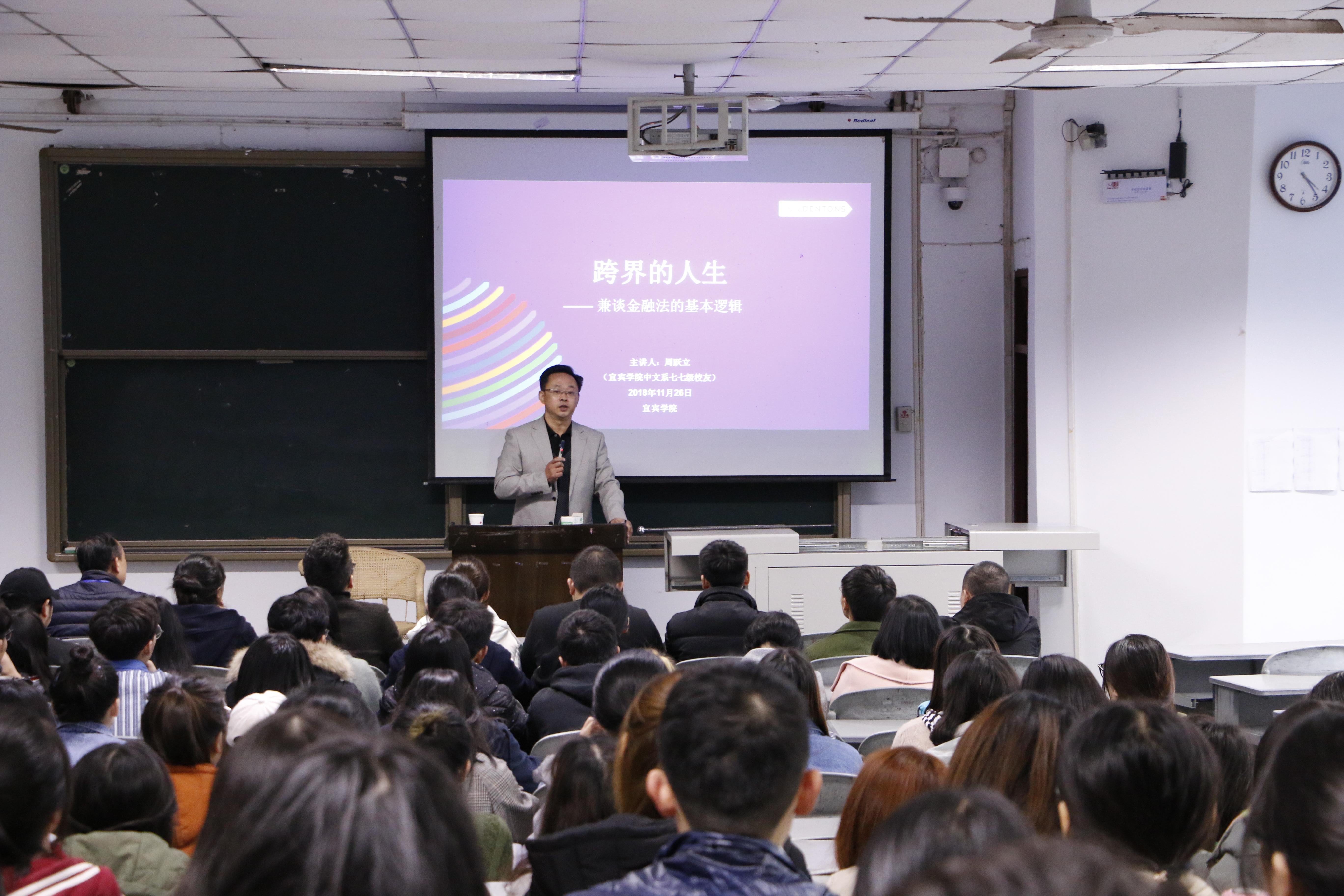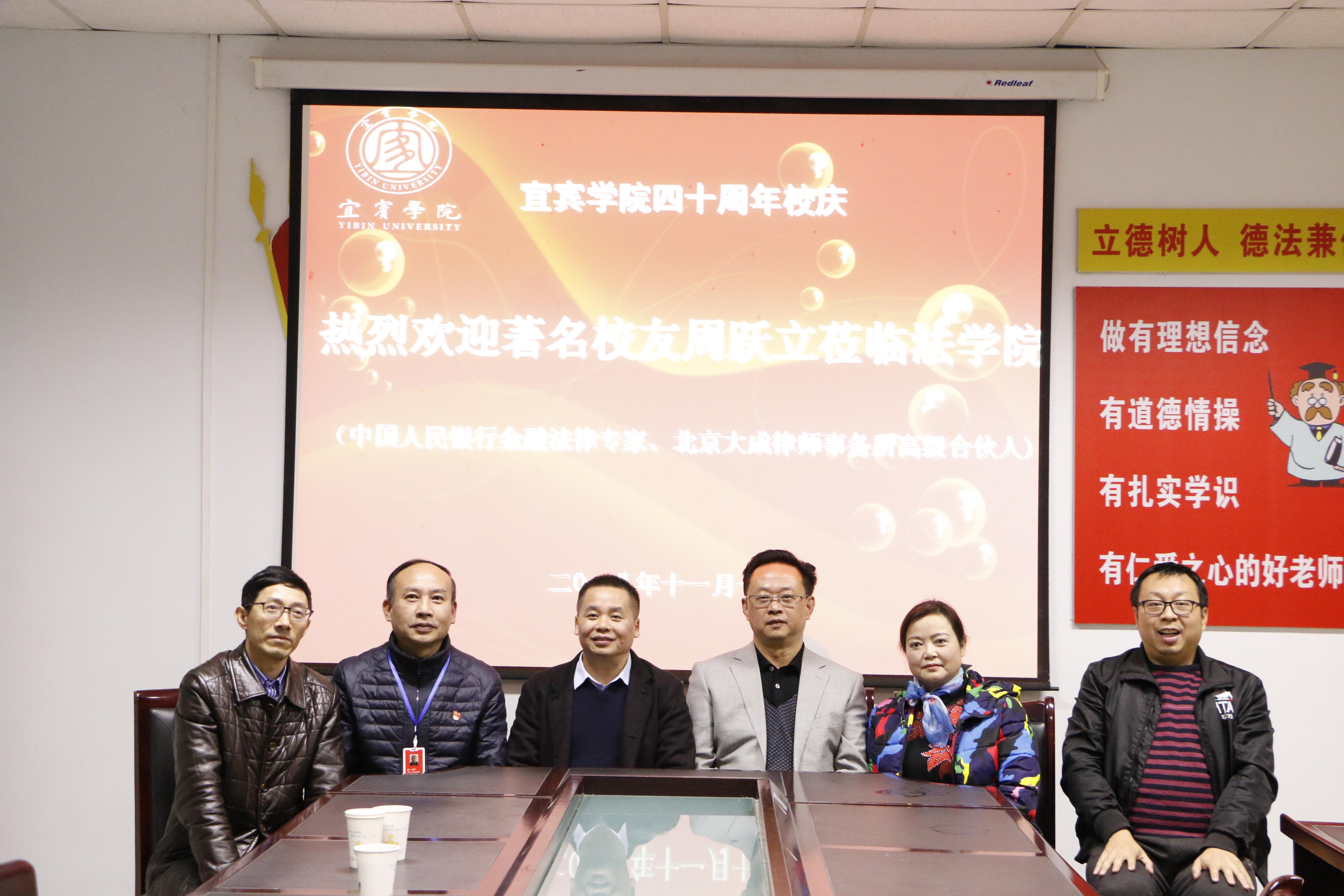 四旬年华当不惑,仲冬之月庆华诞。在迎来宜宾学院四十周岁之际,11月16日下午,我校荣幸邀请到了法学院优秀校友周跃立教授为同学们开展讲座。邓中文院长、蒲东升书记及法学院、经管学院的部分老师和同学们有幸参加了此次讲座。