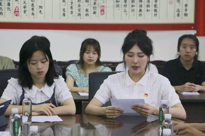 受资助学生马佳琳同学,党员学生李小燕同学代表法管学部全体学生对学校和学部领导老师的帮扶和关怀表示感谢,同时提到在未来的学习和生活中将继续不忘初心,努力践行“求实,求是,开放,创新”校训精神,修业求真,孜孜不倦,自觉树立和践行社会主义核心价值观。