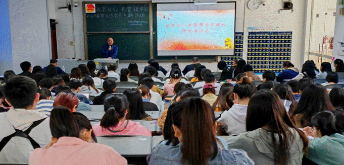 为增强党支部队伍建设,强化毕业生党员将党建与就业相结合的意识,着力提高其思想作风与党性修养,进一步贯彻落实习近平总书记来川来宜来校重要指示精神,4月24日,法学与公共管理学部(下简称法管学部)党总支于初心楼104教室召开毕业生党员承诺践诺主题活动,本次活动由法管学部党总支副书记张波主持,法管学部部长陈世海、党总支副书记刘廷华、法管学部副部长周陶、党总支副书记单琰秋、正处级组织员蒲东升、第一学生党支部书记杨肖、第二学生党支部书记刘顺鑫和第三学生党支部书记王馨出席本次活动。