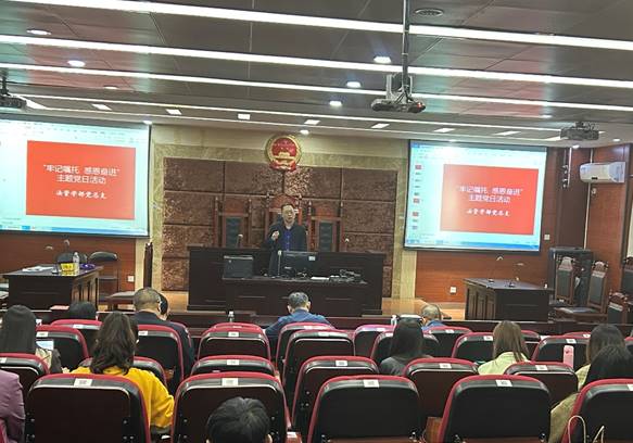 为深入学习贯彻习近平新时代中国特色社会主义思想,确保学部党员准确掌握习近平新时代中国特色社会主义思想的主要内容、精神实质,达到“学思想、强党性、重实践、建新功”总要求,法学与公共管理学部党总支于5月10日下午开展“牢记嘱托 感恩奋进”主题党日活动,活动由学部党总支副书记(负责工作)刘廷华主持,学部全体党员参加。